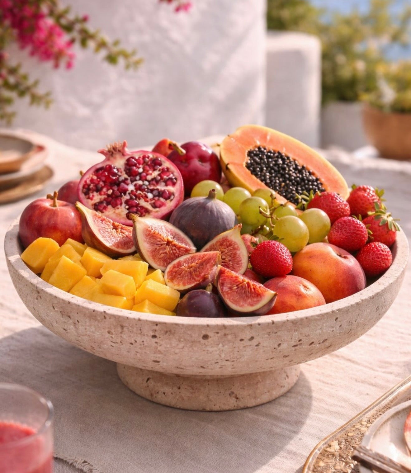 Symmetrical Organic Travertine Limestone Raised Bowl